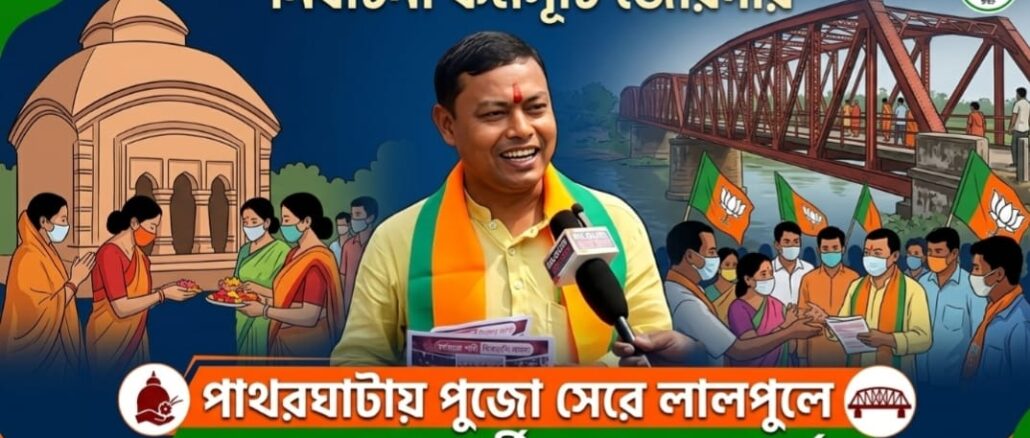 নির্বাচনী কর্মসূচি জোরদার, পাথরঘাটায় পুজো সেরে লালপুলে জনসংযোগে প্রার্থী আনন্দময় বর্মন