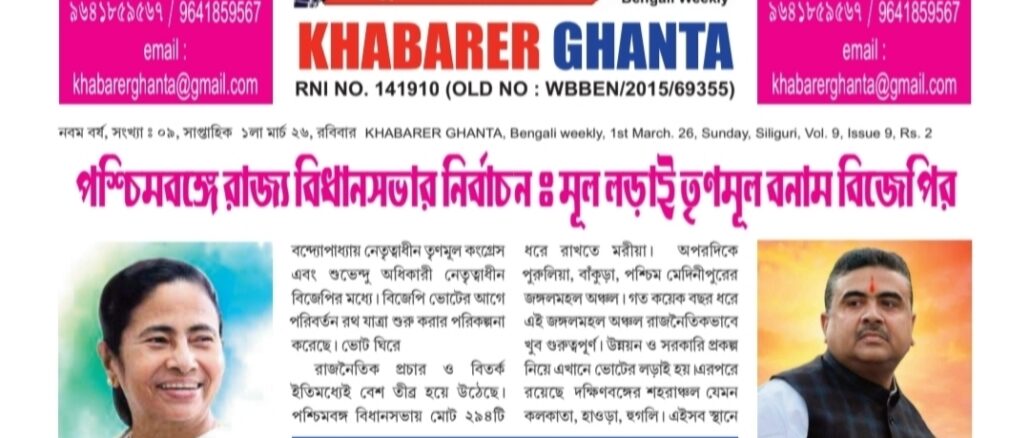 নিজস্ব প্রতিবেদক : খবরের ঘন্টা সাপ্তাহিক পত্রিকার ডিজিটাল সংস্করণ এখন রঙিন। এই ডিজিটাল সংস্করণ পয়লা মার্চ ২০২৬ সংখ্যা রবিবার (1st March 2026 Sunday) প্রকাশিত হয়েছে। […]
