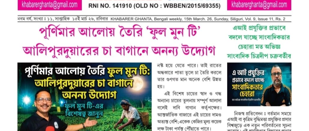 নিজস্ব প্রতিবেদক : খবরের ঘন্টা সাপ্তাহিক পত্রিকার ডিজিটাল সংস্করণ এখন রঙিন। এই ডিজিটাল সংস্করণ ১৫ই মার্চ ২০২৬ সংখ্যা রবিবার (15th March 2026 Sunday) প্রকাশিত হয়েছে। […]