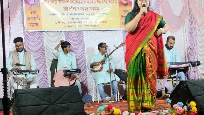 শান্তি, সহানুভূতি ও মানবকল্যাণের বার্তা নিয়ে গত শনিবার ও রবিবার শিলিগুড়ির হায়দরপাড়া বিদর্শন ধ্যান আশ্রমে অনুষ্ঠিত হলো ৪৫তম মহা কঠিন চীবর দান উৎসব। দু’দিনব্যাপী এই উৎসবকে ঘিরে আশ্রম প্রাঙ্গণ মুখরিত হয়ে ওঠে ভক্ত, সন্ন্যাসী এবং বিভিন্ন প্রান্ত থেকে আগত বৌদ্ধ ধর্মাবলম্বীদের উপস্থিতিতে।