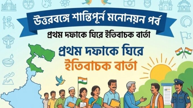 প্রথম দফার অন্তর্ভুক্ত উত্তরবঙ্গের বিভিন্ন কেন্দ্রে সোমবার প্রার্থীরা নিয়ম মেনে মনোনয়নপত্র জমা দেন। প্রশাসনের কড়া নজরদারি এবং নিরাপত্তা ব্যবস্থার ফলে কোথাও বড় ধরনের অপ্রীতিকর ঘটনার খবর পাওয়া যায়নি, যা অবাধ ও সুষ্ঠু নির্বাচনের পক্ষে ইতিবাচক ইঙ্গিত বহন করছে।