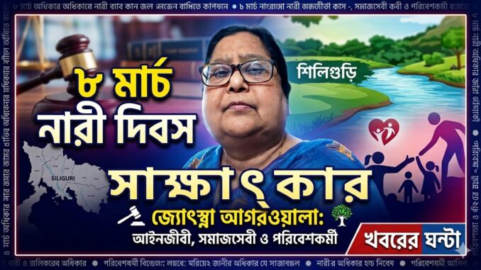 ৮ মার্চ আন্তর্জাতিক নারী দিবসকে সামনে রেখে মেয়েদের সচেতনতা বৃদ্ধির নানা দিক নিয়ে গুরুত্বপূর্ণ বক্তব্য রাখলেন বিশিষ্ট আইনজীবী, সমাজসেবী ও পরিবেশকর্মী জ্যোৎস্না আগরওয়ালা । সমাজের বিভিন্ন সমস্যা ও তার সমাধান নিয়ে দীর্ঘদিন ধরেই সক্রিয়ভাবে কাজ করে চলেছেন তিনি।