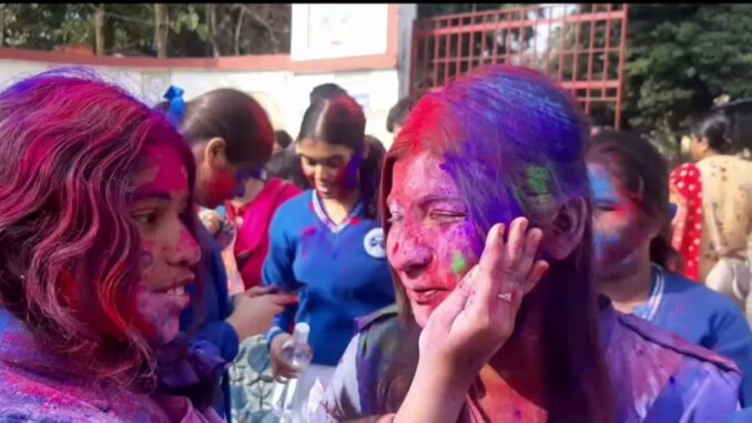 পরীক্ষা শেষে জলপাইগুড়ি রাষ্ট্রীয় বালিকা বিদ্যালয়সহ শহরের বিভিন্ন পরীক্ষা কেন্দ্রের সামনে ধরা পড়ল এক আনন্দঘন চিত্র। কেন্দ্র থেকে বেরিয়ে অনেক পরীক্ষার্থী রঙ খেলায় মেতে ওঠে। দোল উৎসবের এখনও কিছুটা সময় বাকি থাকলেও এদিন স্কুলের সামনেই আবিরে রঙিন হয়ে ওঠে পরিবেশ।