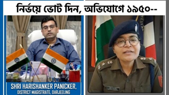 আসন্ন নির্বাচনের প্রাক্কালে ভোটারদের উদ্দেশ্যে গুরুত্বপূর্ণ বার্তা দিলেন দার্জিলিং জেলার প্রশাসনিক কর্তারা। কেউ যদি কোনোভাবে ভয় প্রদর্শন করেন বা ভোটদানে বাধা সৃষ্টি করার চেষ্টা করেন, তাহলে সঙ্গে সঙ্গে ১৯৫০ টোল ফ্রি নম্বরে অভিযোগ জানানোর আহ্বান জানানো হয়েছে।
