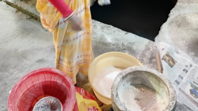 পিঠে পুলি হবার জন্য রাজবংশী সম্প্রদায়ের এই বিশেষ সময়ে তাদের উড়ান আর ডাইন নিয়ে চাল গুঁড়ো করতে ব্যস্ত। খদ্দেরও প্রচুর।আমিও বুধবার উদযাপন করছি পৌষ পার্বণ।