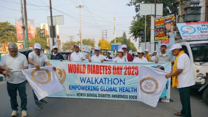 বিশ্ব ডায়াবেটিস দিবসে শিলিগুড়িতে বর্ণাঢ্য ওয়াকাথন: থিম—নো মোর,ডু মোর ফর ডায়াবেটিস অ্যাট ওয়ার্ক।