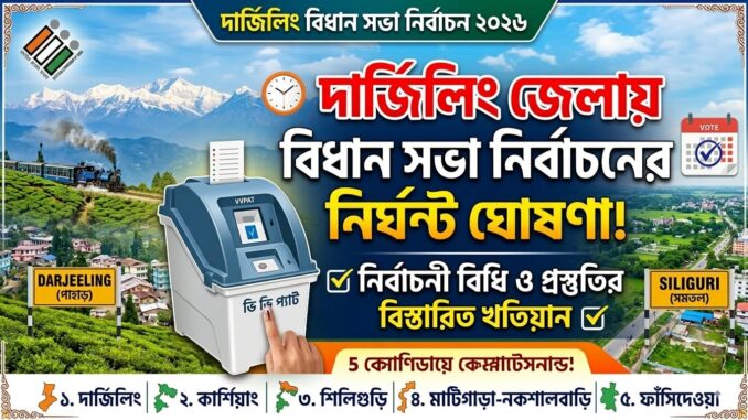 ২০২৬ সালের বিধানসভা নির্বাচনকে সামনে রেখে দার্জিলিং জেলা প্রশাসন ও জেলা নির্বাচন আধিকারিকের পক্ষ থেকে গত ১৫ মার্চ, ২০২৬ তারিখে একটি বিস্তারিত প্রেস বিবৃতি প্রকাশ করা হয়েছে। সেখানে নির্বাচনের তারিখ, ভোটার সংখ্যা এবং নির্বাচনী বিধিনিষেধ সংক্রান্ত যাবতীয় তথ্য জনসাধারণের উদ্দেশ্যে জানানো হয়েছে।
