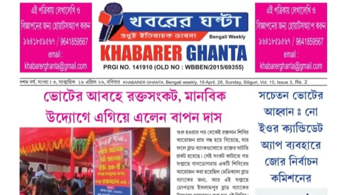 খবরের ঘন্টা সাপ্তাহিক পত্রিকার রঙিন ডিজিটাল সংস্করণ ১৯শে মে ২০২৬ সংখ্যা April 20, 2026 Khabarer Ghanta খবরের ঘন্টা পত্রিকা/ম্যাগাজিন 0 Oplus_16908288 নিজস্ব প্রতিবেদক : খবরের ঘন্টা সাপ্তাহিক পত্রিকার রঙিন ডিজিটাল সংস্করণ ১৯শে মে ২০২৬ সংখ্যা রবিবার প্রকাশিত হয়েছে। এই পত্রিকা পড়ার জন্য নিচের 19-04-2026 লেখা অংশে ক্লিক করুন : 19.04.26_Layout 1 Post Views: 18