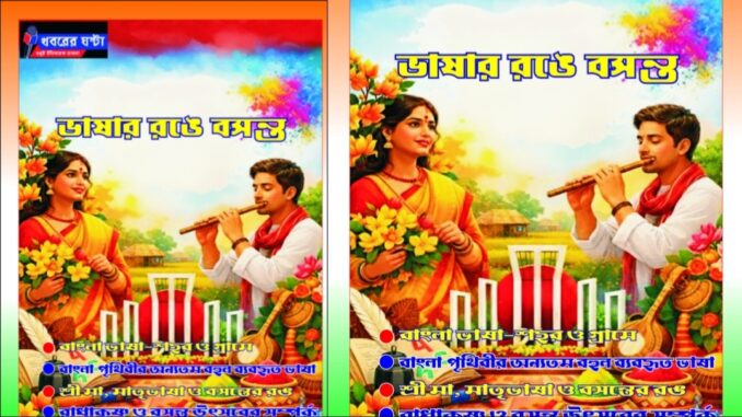 নিজস্ব প্রতিবেদন : এবার খবরের ঘন্টা পত্রিকার বিশেষ সংখ্যা ভাষার রঙে বসন্ত প্রকাশিত হয়েছে। এই পত্রিকার ডিজিটাল সংস্করণ পড়ার জন্য নিচের 21ST FEBRUARY লেখা লিঙ্কে ক্লিক করুন :
