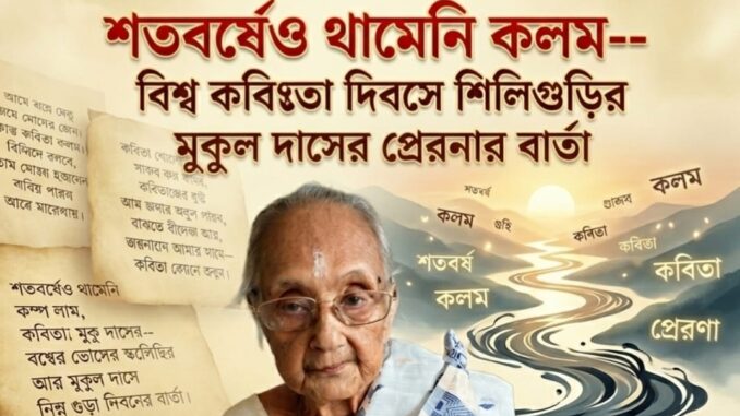 এই বিশ্ব কবিতা দিবস আমাদের মনে করিয়ে দেয়—প্রযুক্তির দ্রুতগতির যুগেও শব্দের জাদু কখনও ম্লান হয় না। একটি ছোট কবিতাও মানুষের মন ছুঁয়ে যেতে পারে, বদলে দিতে পারে দৃষ্টিভঙ্গি, জাগিয়ে তুলতে পারে নতুন চেতনা। আর সেই চেতনার এক জীবন্ত উদাহরণ হয়ে রয়েছেন শতবর্ষীয় মুকুল দাস, যাঁর কলম আজও এগিয়ে চলেছে দুর্বার গতিতে।