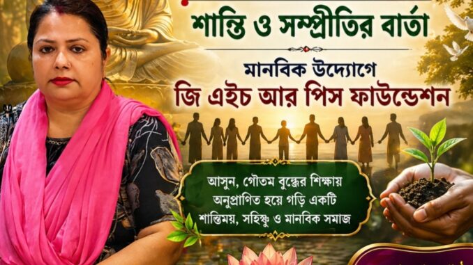 নিজস্ব প্রতিবেদক : পয়লা মে বুদ্ধ পূর্নিমাকে সামনে রেখে সমাজে শান্তি, সদভাবনা ও সম্প্রীতির বার্তা ছড়িয়ে দিল স্বেচ্ছাসেবী সংস্থা গ্লোবাল হিউম্যান রাইটস এন্ড পিস ফাউন্ডেশন । সংস্থার ডিরেক্টর বিন্দু শর্মা জানান, গৌতম বুদ্ধ মানবজাতির জন্য অহিংসা ও প্রেমের যে বাণী রেখে গিয়েছেন, তা আজকের বিশ্ব পরিস্থিতিতে আরও বেশি প্রাসঙ্গিক হয়ে উঠেছে।