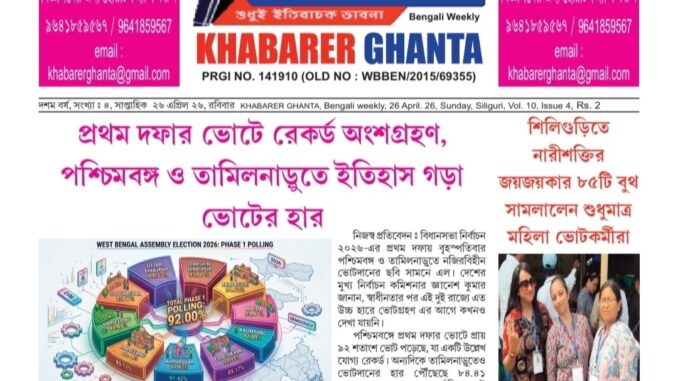 নিজস্ব প্রতিবেদন : খবরের ঘন্টা সাপ্তাহিক পত্রিকার রঙিন ডিজিটাল সংস্করণ ২৬ এপ্রিল ২০২৬ সংখ্যা। নিচে পি ডি এফ ফাইল :