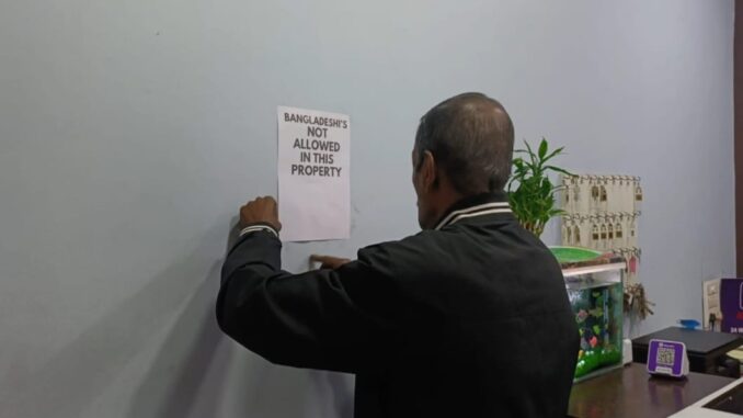 শিলিগুড়ি শহরের একাধিক হোটেলে শুক্রবার সকাল থেকেই চোখে পড়ল নতুন পোস্টার— বাংলাদেশি নাগরিকদের প্রবেশ নিষেধ। বাংলাদেশের বর্তমান রাজনৈতিক ও সামাজিক পরিস্থিতির কথা বিবেচনা করেই এই সিদ্ধান্ত নেওয়া হয়েছে বলে জানিয়েছে শিলিগুড়ি হোটেল ওনার্স অ্যাসোসিয়েশন।