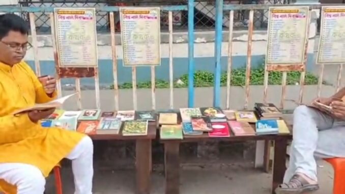 চায়ের কাপ হাতে নিয়েই বইগুলোর পাতা উল্টে দেখেন নাট্যকর্মী ঝন্টু হালদার ও রাকেশ প্রামাণিক। পাশাপাশি পথ দিয়ে যাওয়ার সময় এই ব্যতিক্রমী আয়োজন দেখে আকৃষ্ট হয়ে বই ঘেঁটে দেখেন সাধারণ মানুষও, তাঁদের মধ্যে ছিলেন বিমল দত্ত ও বিনায়ক কৃষ্ণ মজুমদার।